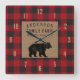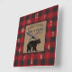 Rustic Bear Family Cabin Red Buffalo Plaid Burlap Square Wall Clock