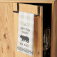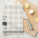Customise your kitchen with this cute personalised towel featuring your family name or house name and year established in rich charcoal grey lettering accented with a bear illustration on a tonal plaid background.