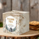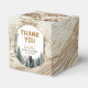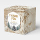 Send guests home with a sweet adventure! This rustic woodland baby shower favour box features a hand-painted black bear, pine trees, and watercolor mountains with a topographic map background. The perfect finishing touch for your “Oh Boy, Let the Adventure Begin” baby shower theme. Personalise with your details for a unique keepsake guests will love.