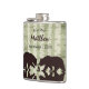 This rustic woodland wedding flask features two silhouette bears fishing in a stream with a fish jumping to catch a dragonfly. They are set against a country or mountain strand of birch trees in shades of brown, green and white. They can be personalised with a Wedding Party Title, name, wedding date or any text that you wish to add. Some graphics by Origins Digital Curio at www.etsy.com/shop/OriginsDigitalCurio
