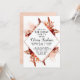 Rustic Beauty Floral Watercolor Bohemian Autumn or Fall Design with Boho Feathers, Hand Painted Flowers, Watercolor Paint Brush Strokes, and Plenty of colourful orange, rust, red, Burgundy, Marsala, and peach leaves and foliage. With Swirly Hand Lettered Fonts and Rose Gold Geometric Diamond Frame Shape Modern and Chic Birthday Party invitations!