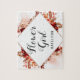 Rustic Beauty Floral Framed Watercolor Bohemian Autumn or Fall Design with Boho Hand Painted Feathers, Flowers, and Plenty of colourful orange, rust, red, Burgundy, Marsala, and peach leaves and foliage. With Hand Drawn Line elements, Swirly Hand Lettered Fonts, rose gold foil glitter, Paint Brush Strokes, and Geometric Diamond Frame Flower Girl Puzzle!