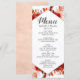 Rustic Beauty Floral Framed Watercolor Bohemian Autumn or Fall Design with Boho Hand Painted Flowers, feathers, and Plenty of colourful orange, rust, red, Burgundy, Marsala, and peach leaves and foliage. With Hand Drawn Line elements, Swirly Hand Lettered Fonts, and Rose Gold Glitter Foil Geometric Hexagon Frame Wedding Reception Dinner Menu!