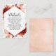 Rustic Beauty Floral Framed Watercolor Bohemian Autumn or Fall Design with Boho Hand Painted Flowers, feathers, and Plenty of colourful orange, rust, red, Burgundy, Marsala, and peach leaves and foliage. With Hand Drawn Line elements, Swirly Hand Lettered Fonts, and Rose Gold Glitter Foil Geometric Hexagon Frame with Modern Paint Brush Strokes Wedding Details card!