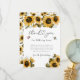 Rustic bee theme gender reveal party thank you template card featuring watercolor illustration of yellow sunflowers and baby's breath with bumblebees.