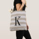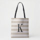 Rustic Beige and Ivory Stripes Large Monogram Tote Bag