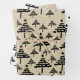 Rustic Beige Black Simple Christmas Tree Pattern Wrapping Paper Sheets. Simple Christmas tree pattern in different sizes and shapes are on the rustic beige texture and white background.