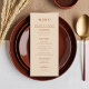 Enhance your autumn wedding with this rustic wedding menu, featuring elegant beige and terra cotta tones, perfect for a warm and inviting fall celebration.