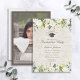 An elegant rustic graduation party invitation featuring white floral watercolor elements on a faux birch bark background, with photo on reverse. Copyright Elegant Invites, all rights reserved.