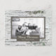 Share your holiday wishes this Christmas season with a unique personalised photo postcard. This rustic style design features a grey birch wood background along with a taupe coloured frame for your picture and an area for the sentiment which may be personalised and reads "Merry Christmas" with your family name below. The back of the postcard has birch on the edges, a place for return address, a greeting, illustration of pone cones and needles along with your signature. Replace the photo shown with your own for a one of a kind design that your family and friends will love! Photography © Storytree Studios, Stanford, CA.
