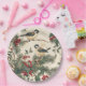 Rustic Bird and Poinsettia Christmas Pattern (8) Paper Plate