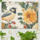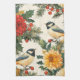 Rustic Bird and Poinsettia Christmas Pattern (9) Tea Towel