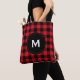 Rustic Black and Red Plaid Pattern Monogram Tote Bag