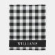 This classic black and white buffalo check pattern blanket has a black strip on the bottom with a family name in white text. Personalise with your own name or to give as a gift.