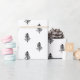 Custom-designed Christmas wrapping paper featuring rustic hand drawn style black and white pine trees design.