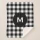Rustic Black and White Plaid Pattern Monogram Sherpa Blanket