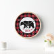 Rustic Black Bear Lumberjack Buffalo Plaid Clock