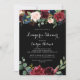 This rustic black botanical bridal lingerie shower invitation is perfect for a classic wedding shower. The design features burgundy, red, navy, blue and blush radiant and graceful hand-painted flowers in a black background, inspiring natural beauty.