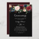 This rustic black botanical Quinceañera invitation is perfect for a classic 15th birthday party. The design features burgundy, red, navy, blue and blush radiant and graceful hand-painted flowers in a black background, inspiring natural beauty.