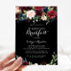 This rustic black botanical wedding breakfast invitation is perfect for a classic family and friends day after the wedding get together breakfast. The design features burgundy, red, navy, blue and blush radiant and graceful hand-painted flowers in a black background, inspiring natural beauty.