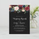 This rustic black botanical wedding brunch invitation is perfect for a simple family and friends day after the wedding get together brunch. The design features burgundy, red, navy, blue and blush radiant and graceful hand-painted flowers in a black background, inspiring natural beauty.