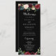 This rustic black botanical wedding program is perfect for a classic wedding. The design features burgundy, red, navy, blue and blush radiant and graceful hand-painted flowers in a black background, inspiring natural beauty.