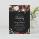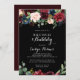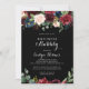 This rustic black brunch and bubbly bridal shower invitation is perfect for a classic wedding shower. The design features burgundy, red, navy, blue and blush radiant and graceful hand-painted flowers in a black background, inspiring natural beauty.