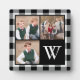 Create your own family photo collage keepsake with your favorite family photos on this plaque featuring a simple but trendy background of black and white buffalo check plaid gingham. Three square photos are framed by a black border and a fourth square is black with a white monogram initial for you to personalize. Replace the sample template photos with your own. Make a unique gift for family and friends. Photography © Storytree Studios, Stanford, CA