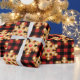 Rustic Black Buffalo Plaid & Gingerbread Snowflake Wrapping Paper