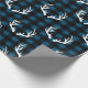 Rustic wrapping paper featuring white deer a antlers pattern. The background is black buffalo check plaid but the blue colour can be changed. Wrap it up this holiday season in bold rustic wilderness style! Stand out among that pile of presents!