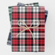Rustic chic holiday gift wrap set features three coordinating holiday wrapping paper sheets in red, navy blue, and forest green colours with black and white accents. Sheets include a Scottish black watch tartan plaid pattern in classic red, navy blue, and forest green colours.