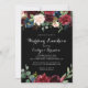 This rustic black wedding luncheon bridal shower invitation is perfect for a classic wedding shower. The design features burgundy, red, navy, blue and blush radiant and graceful hand-painted flowers in a black background, inspiring natural beauty.