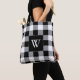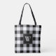 Rustic Black White Buffalo Check Plaid Monogram Tote Bag