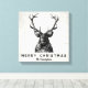 Rustic Black White Deer Christmas Monogram Canvas Print