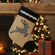 Rustic Black & White Plaid Reindeer Custom Name Large Christmas Stocking