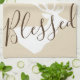 Rustic Blessed Script White Deer Silhouette Tea Towel