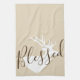 Rustic white deer silhouette and taupe "Blessed" script kitchen towel.