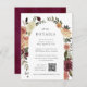An all-purpose enclosure card for your wedding invitations, this petite Details card provides three custom text fields for your wedding details, website, and a QR code for RSVPs or additional information. Designed to match our Rustic Bloom wedding invitations, featuring an arch of watercolor painted mum and rose flowers in rich autumn shades of marsala, burgundy plum, blush pink, and cream.