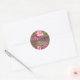 Rustic wood baby shower favour seal featuring a watercolor pink & purple floral bouquet.