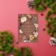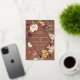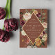 Elegant floral wedding invitations or fall or winter weddings feature your details nestled inside an elongated diamond surrounded by watercolor roses, mums and greenery in rustic autumn colours including peach, ivory, blush, burgundy and green on a rich terracotta rust background. Gold foil trim completes the design.