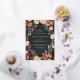 A showstopper in rich earth tones, this elegant floral wedding invitation or fall or winter weddings features your details nestled inside an elongated gold foil hexagon surrounded by watercolor roses, mums and greenery in rustic autumn colours including peach, ivory, blush, burgundy and green.