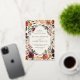 A showstopper in rich earth tones, this elegant floral wedding invitation or fall or winter weddings features your details nestled inside an elongated gold foil hexagon surrounded by watercolor roses, mums and greenery in rustic autumn colours including peach, ivory, blush, burgundy and green.