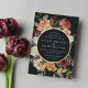 Elegant floral wedding invitations or fall or winter weddings feature your details encircled by watercolor roses, mums and greenery in rustic autumn colours including peach, ivory, blush, burgundy and green, with sleek gold foil trim on a rich off-black background. A modern and elegant design for rustic chic weddings in the fall or winter months.