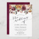 Elegant floral wedding invitations or fall or winter weddings feature your details topped by a spray of watercolor roses, mums and greenery in rustic autumn colours including peach, ivory, blush, burgundy and green.