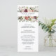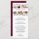 Chic autumn wedding menu features your starter courses, entrees and desserts in elegant lettering, with your names and wedding date surrounded by watercolor roses and mums in fall shades of marsala, burgundy, blush pink and ivory, with dark green leaves and foliage. Coordinates with our Rustic Bloom wedding collection for fall and winter weddings.