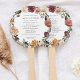 Our rustic chic wedding program fan features your ceremony details in elegant lettering, encircled by a wreath of watercolor flowers in rich autumn hues. Reverse side lists the members of your wedding party with easily editable text fields. Coordinates with our Rustic Bloom wedding invitation collection. Use the template fields to add your ceremony and bridal party information, and then click "Customise It" to reposition elements if needed. Need help? Contact me via the "Ask this Designer" link on this page.
