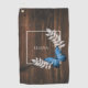 Personalise a unique towel for golfing with a Rustic Blue Butterfly Personalised Golf Towel. Towel design features a vibrant butterfly resting on delicate foliage with a space to add your name against a rustic wooden background. Additional gift items available with this design as well as a variety of colours.