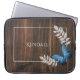 Protect your laptop with a Rustic Blue Butterfly Personalised Laptop Sleeve. Laptop sleeve design features a vibrant butterfly resting on delicate foliage with a space to add your name against a rustic wooden background with a place to personalise with your name.