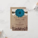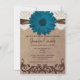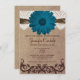 I highly recommend the LINEN or FELT paper type for elegant textured paper. | Here's a unique bridal shower invitation for a country bride. These feature a rustic printed design with printed lace and twine with a blue gerber daisy at the top and a flourish vine scroll print at the bottom. These are perfect for brides who will be having a country style wedding or will be using blue daisies or any type of blue flowers in their wedding.