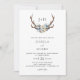 Rustic Blue Floral Stag Antlers Wedding Invitation